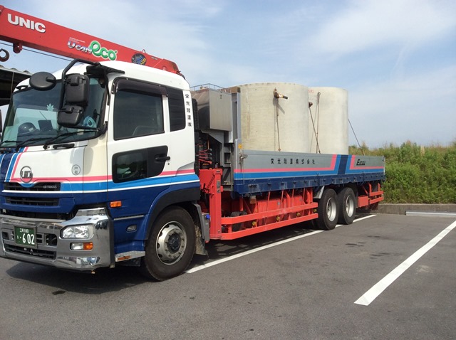 2014年6月9日 / 最終更新日時 : 2014年6月9日 eikou 栄光陸運株式会社 ユニック車紹介。 弊社では、3t、4t、8t、10t、15tのユニック車を豊富に取り揃えています。 15tユニック車が富士川まで防火水槽を運びました。 15tユニック車が京都まで楕円マンホールを運びました。 10tユニックが道路側溝を運びました。左は、5月に納車したばかりの新車です。