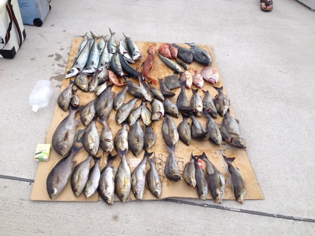 2014年7月14日 / 最終更新日時 : 2014年7月14日 eikou 栄光陸運株式会社 栄光丸 釣りクラブ 平成26年7月13日(日) 大山沖で栄光丸に乗って大浜港から片道2時間かけて釣りをしてきました。 社員と取引先のお客様K社様合わせて6名です。 大漁に釣れてみんな大喜びでした☆ 栄光丸の船内です。 ハンマーシャークが釣れました。 全部で約60匹も釣れました。 イサキ、鯛、カワハギ、アジ、カサゴ、ホウボウ、メジナなどです。 栄光釣りクラブに参加してみたい方は、鳥越までご連絡お願いします。