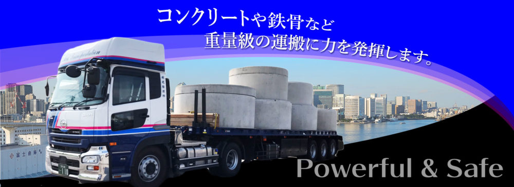 一般貨物はもとより、コンクリートや鉄骨などの重量物輸送も得意としています。平成5年の設立以来、インフラ整備や大型商業施設の建設に伴い、栄光陸運も急成長。コンクリートや鉄骨を輸送する28tトレーラーを20台保有する他、大型平ウィング車・ユニック車など合わせて85台が揃うとともに、重量物流に長けた経験豊富なドライバーが多数育っています。