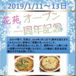 2019年1月9日 / 最終更新日時 : 2020年1月29日 eikou 花苑 花苑オープン1周年記念 社長がオーナーの花苑がオープン1周年を1月11日に迎えます。 期間中は、チヂミが半額になります。ご来店お待ちしております。