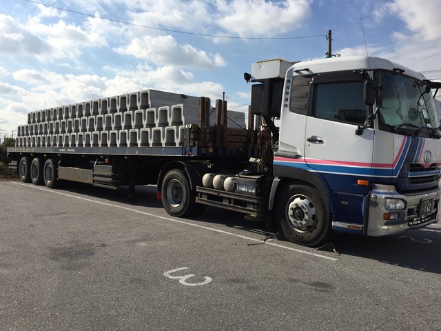 2014年12月26日 / 最終更新日時 : 2014年12月26日 eikou 栄光陸運株式会社 トレーラー輸送。 弊社は、トレーラーを10台保有しています。 トレーラーは、屋根瓦、コンクリート製品など輸送しています。 トレーラーがグリーンデコを輸送しました。河川等の護岸工事に使用します。 三重県から海津市まで輸送しました。 トレーラーが道路側溝を三重県から三田市まで輸送しました。