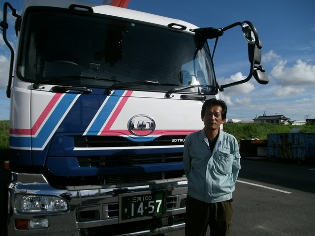 2013年9月9日 / 最終更新日時 : 2013年9月9日 eikou 栄光陸運株式会社 新車です。 8月29日(木)大安の日にUDトラックの15tユニックを2台購入しました。 乗務員は、入社6年のNさんです。 Nさんにインタビューしました。 ①新車の乗り心地はどうですか? 2tトラックからの乗り換えですべてが良いですね。 ②安全運転の心得を教えて下さい。 時間に余裕を持って慌てないこと。 ③今後の目標はありますか? 無事故・無違反を出来るだけ長く続けること。 Nさんは、ホームページのブログ掲載と栄光だより(社内報)に載せる為に 写真撮影、インタビューを快く答えてくれました。