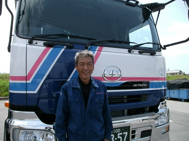 2013年6月3日 / 最終更新日時 : 2013年6月3日 eikou 栄光陸運株式会社 新車の紹介とドライバーさんの紹介です。 平成25年5月16日にUDの15t高床平を購入しました。 運転手は、入社2年目の吉川さんです。 吉川さんにインタビューしました。 ①乗り心地はどうですか? 快適です。 ②安全運転の心得はありますか? 車間距離を十分に取りスピードを控えて走ります。 ③今後の目標はありますか? 安全第一。事故、怪我のないようにすること。