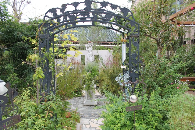 ガーデンのひさしカーテンがおしゃれです。