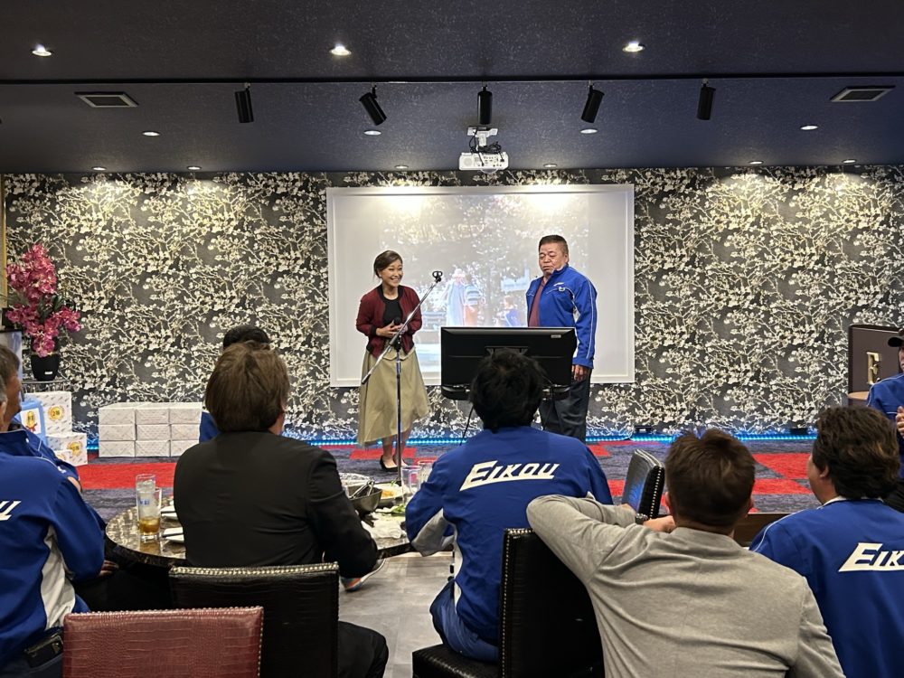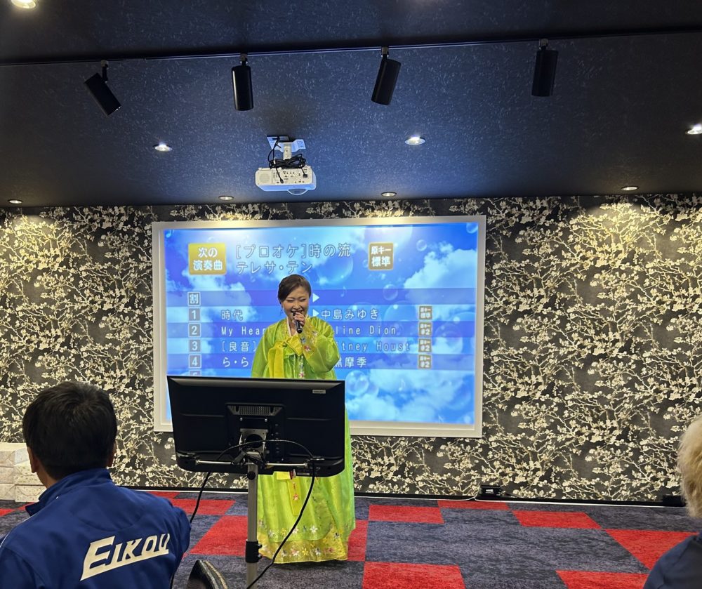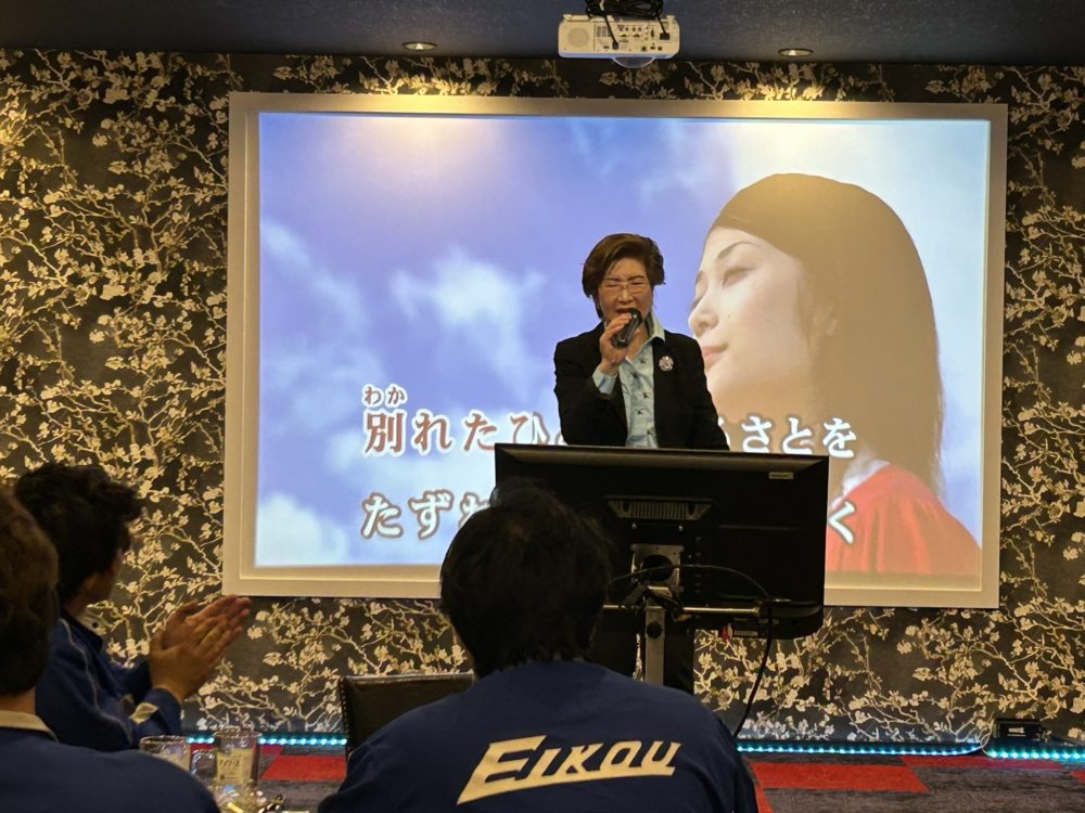 社員も美和さんとデュエットしました。社長も歌い、カラオケはとても盛り上がりました。