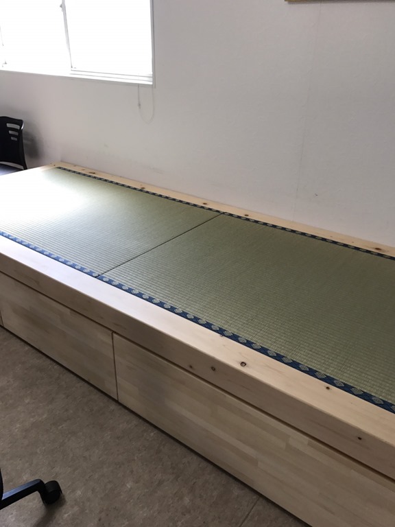 2017年4月15日 / 最終更新日時 : 2017年4月15日 eikou 栄光陸運株式会社 点呼室 平成29年4月13日(木) 点呼室に新しく畳でくつろげる場所が出来ました。下には、収納スペースもあります。 以前、シャワー室を作った大工さんが造りました。 木と畳の香りに癒されドライバーさんもゆっくり休憩出来ると思います。