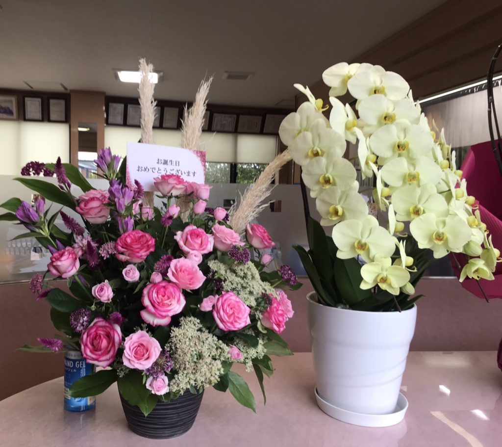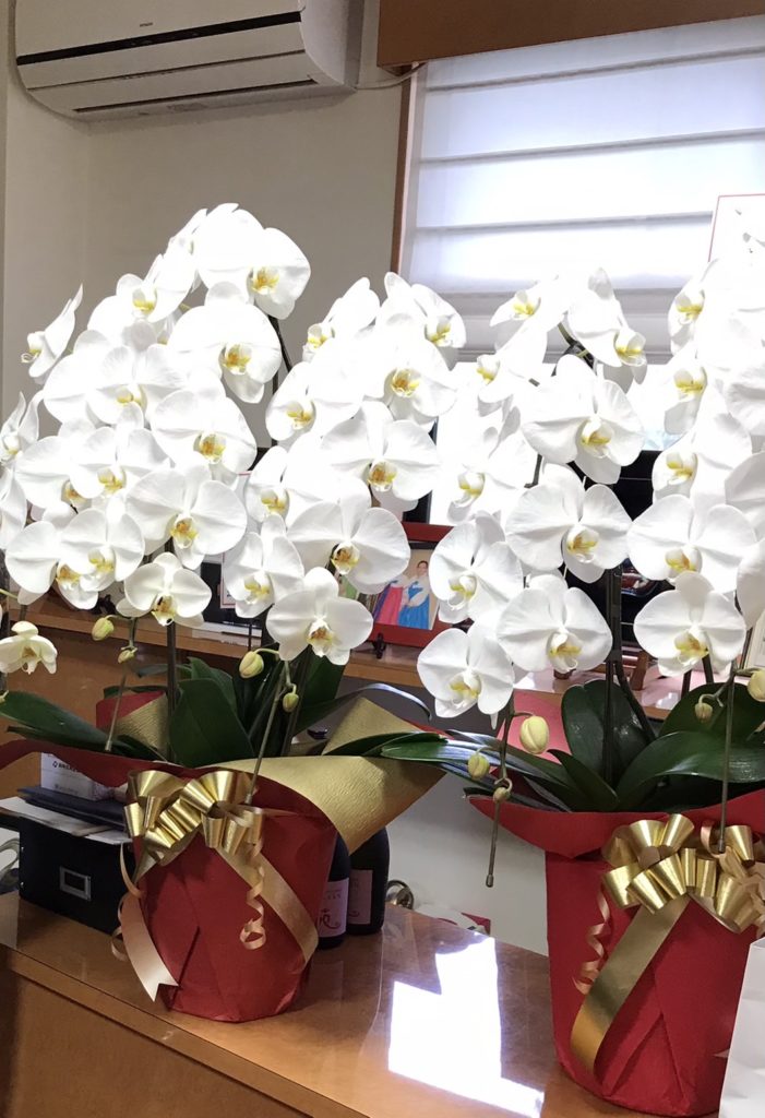 2021年9月17日(金)、社長の誕生日です。事務所は、お祝いで頂いた胡蝶蘭が沢山飾ってあります。