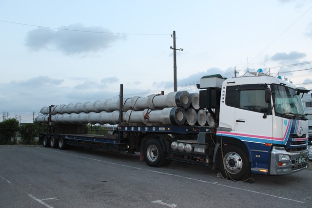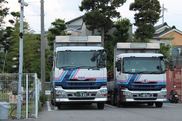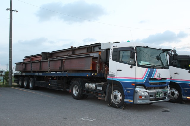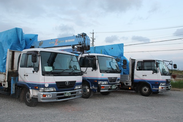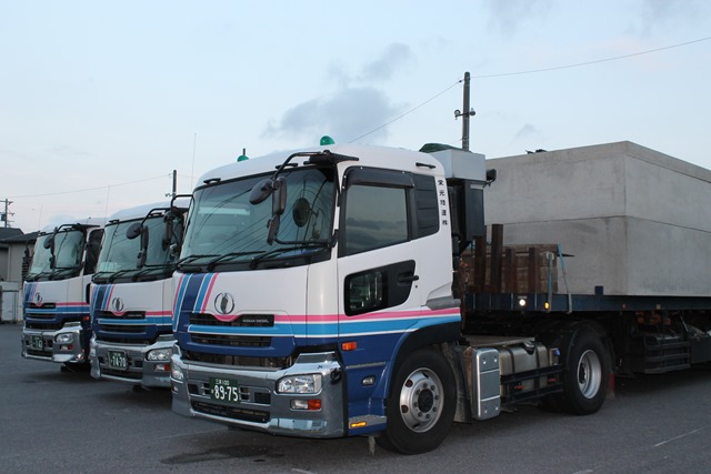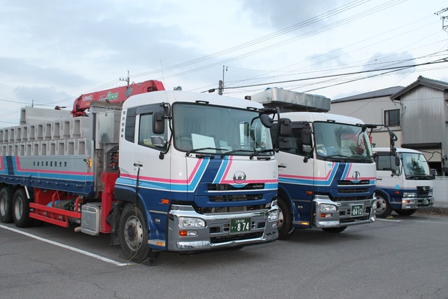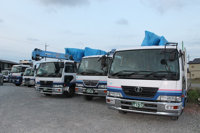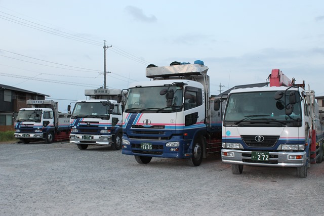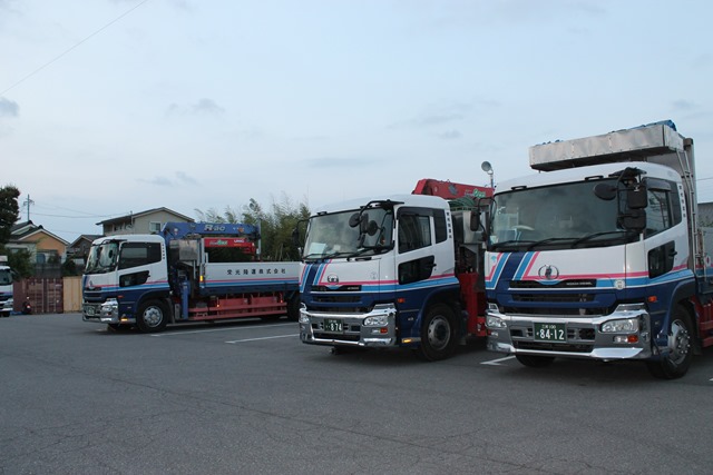 こちらは、第4車庫です。15t高床平やユニックなどの車両です。