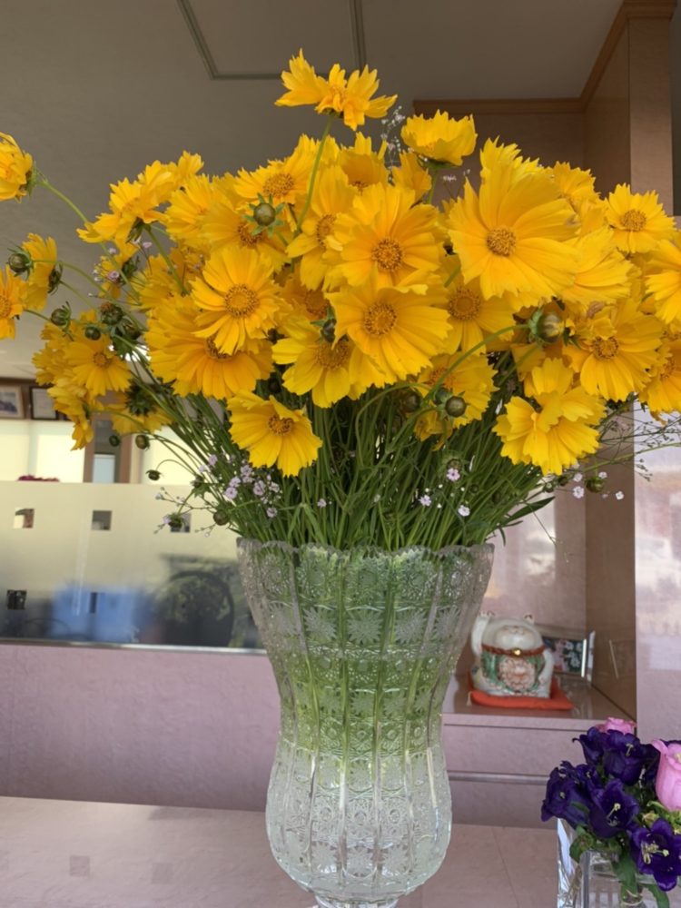 会社の隣の土手に黄色い花がたくさん咲いていました。少し取ってきて花瓶に生けました。