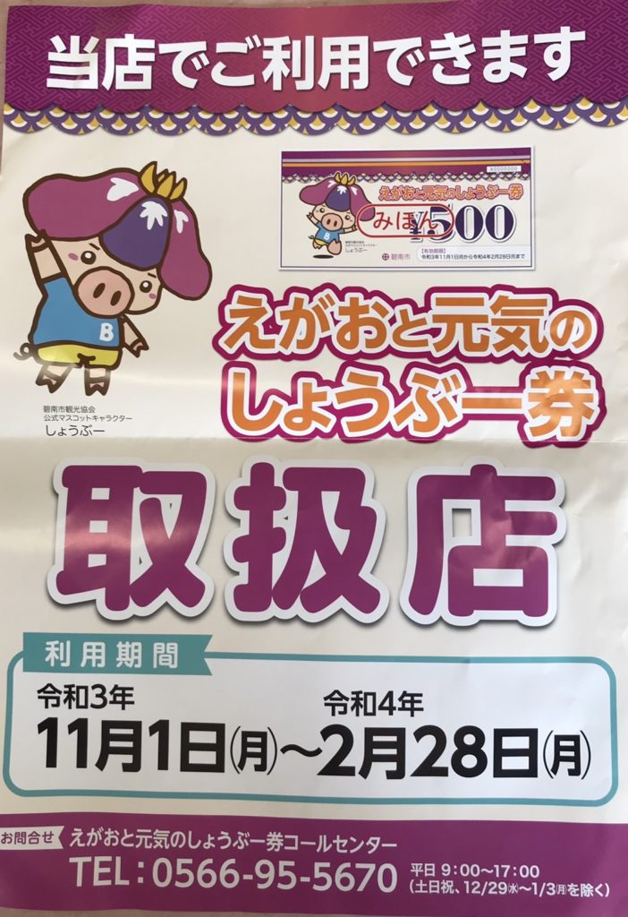 碧南市地域振興券「えがおと元気のしょうぶー券」