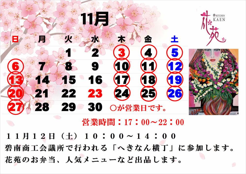 花苑、11月カレンダー