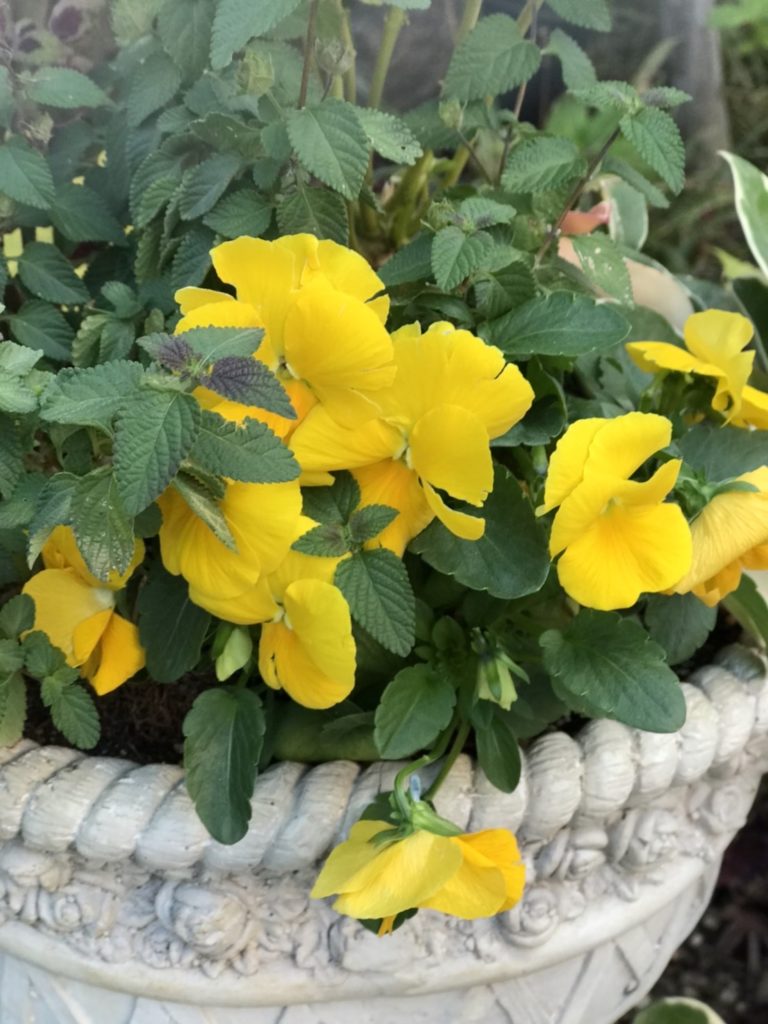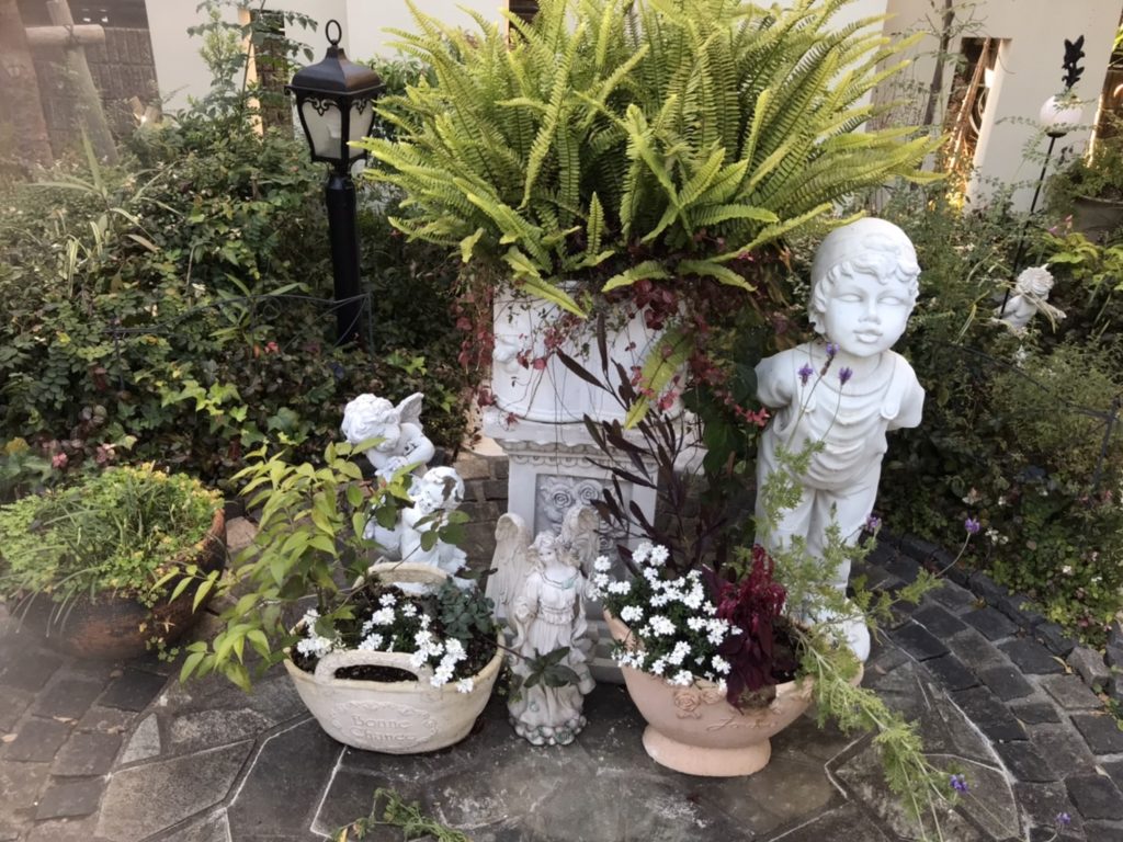 おしゃれな鉢が沢山あるので庭がいつも華やかです。